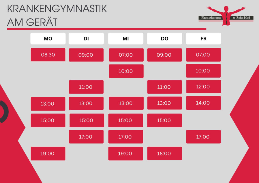 Krankengymnastik am Gerät ist eine speziell auf deine Bedürfnisse zugeschnittene Therapieform, die gezielt darauf abzielt, deine Beweglichkeit, Muskulatur und Koordination zu verbessern. Mit moderner Technik und individuell abgestimmten Übungen kannst du Schmerzen lindern, Muskelverspannungen lösen und deine körperliche Fitness nachhaltig steigern.